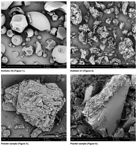 Figures 1-4: Kollidon 25; Kollidon Cl; and powder samples, respectively.