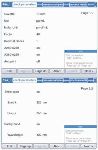 Figure 3. Verification of parameters prior to absorbance measurement.