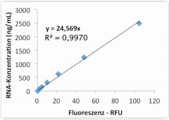 The Eppendorf BioSpectrometer fluorescence is compatible with the RNA detection kits from Life Technologies and Promega. Based on the sample analyses conducted on the Life Technologies kit, it may be concluded that standard curve can be produced by both quadratic and linear regression. In case of the Promega RNA kit, the analysis results of the linear regression or the standard curve exhibited substantial deviation from the nominal value.