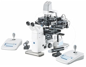 - Two Eppendorf TransferMan 4m micromanipulators (one to move the holding capillary and the other to collect and transfer the spermatozoa)