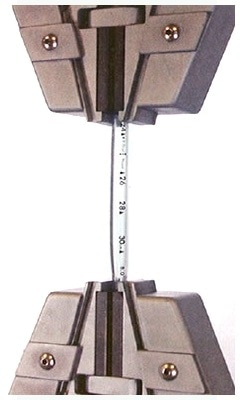 Figure 1. Tensile testing a sample of thick medical tubing