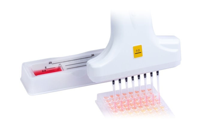 However, as soon as one of the tips of a multichannel pipette begins aspirating air, the remaining liquid in the other tips becomes dead volume. Integra has developed a reservoir combined with two innovations: unique surface treatment and the SureFloTM anti-sealing array to combat this problem.
