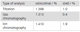Nicotine is a nitrogenous alkaloid that stimulates the parasympathetic nerves. It is highly addictive and is hazardous to health. The determination of the amount of nicotine in tobacco products is therefore important. This Application Note describes a simple method to determine this chemical in tobacco using non-aqueous titration. For comparison, the results determined by GC and IC on the same sample are given.