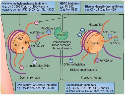More recently, it has been shown that targeting further epigenetic pathways might be of benefit for RA. For example, BET and CBP/p300 bromodomain inhibition reduce the generation of IL-8/IL-6 from fibroblasts and IL-17A from Th17 T cells(6). Likewise, inhibition of the JMJD3/UTX jumonji histone demethylases can cause a reduction of the expression of IL-17A in Th17 cells(7). At present, drug discovery endeavors are focusing on the identification of compounds that can target other epigenetic readers, writers, and erasers of the histone code, such as lysine demethylases, kinases, and histone methyltransferases.