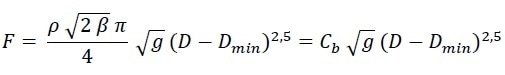 - The grains experience a free fall prior to passing through the orifice, i.e., vout = √2 g β D . This relation comes from the notion that the jamming mechanism is because of the formation of a semi-spherical arch before the orifice. If this arch has a standard size proportional to the aperture, β = 0.5 is obtained. To be more wide-ranging, the parameter β can be a free parameter.