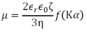 Where Kα is the ratio between the particle radius and the double layer thickness, α is the radius of the particle, K is the reciprocal Debye length, f(Kα) is the Henry function, η is the viscosity of the solvent, εr is the constant of the relative dielectric and ε0 is the solvent dielectric constant in vacuum.
