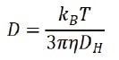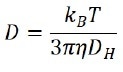 where kB is the Boltzmann’s constant, T is the temperature, and η is the viscosity of the solvent. Preferably, the diffusion coefficient (D) in the Stokes-Einstein equation is characterized by self-diffusion in a dilute concentration range, which indicates that there is no particle-particle interaction in the suspension.