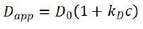 where Dapp is the apparent diffusion coefficient acquired from DLS, c is particle concentration, and kD is the interaction parameter, which is relative to the second virial coefficient as: