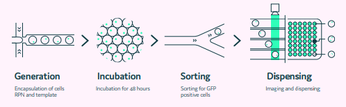 - L. P. Pybus, et al. (2022) Coupling picodroplet microfluidics with plate imaging for the rapid creation of biomanufacturing suitable cell lines with high probability and improved multi-step assurance of monoclonality, Biotech Method.