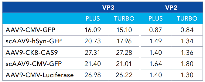 Capsid protein ratios (Turbo vs PLUS). Source: Bio-Techne