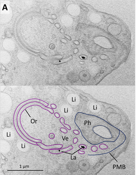 This innovative workflow enabled researchers to identify a unique mitochondrial morphology and a rich endomembrane system composed of various vesicles and vacuoles. Notably, the discovery includes a new organelle named colv (Center for Organization of Layered Vesicles).