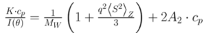 If reorganized for single angle analysis at 90° and solving for weight-averaged molecular weight, the equation changes to:
