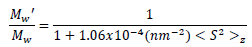 Figure 1 depicts the fractional underestimate inaccuracy of Mw vs Rg=<S2>1/2 and for equivalent spheroidal DH.