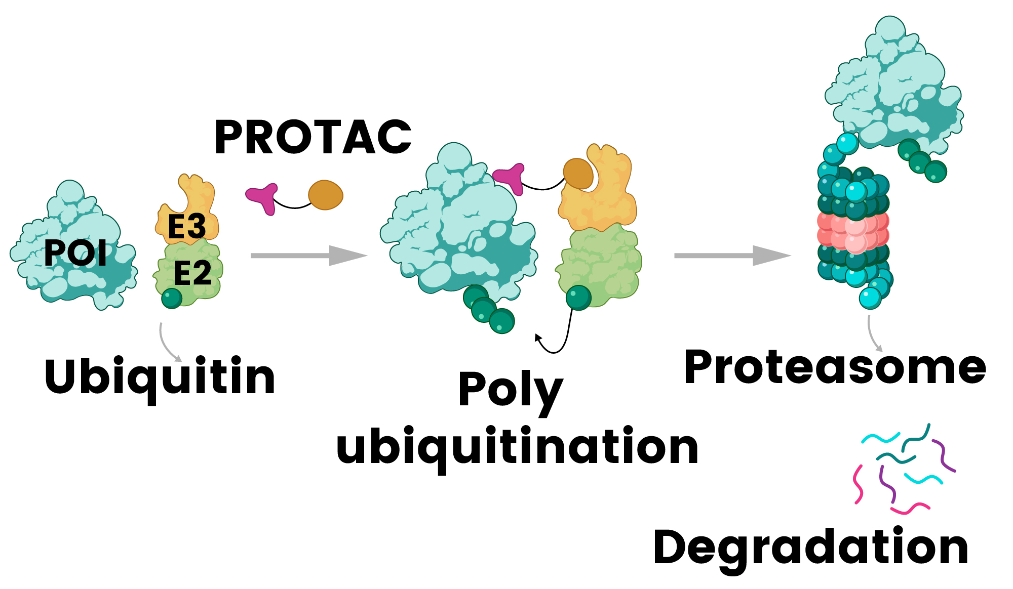 - Sakamoto, K.M., et al. (2001). Protacs: Chimeric molecules that target proteins to the Skp1-Cullin-F box complex for ubiquitination and degradation. Proceedings of the National Academy of Sciences, 98(15), pp.8554–8559. https://doi.org/10.1073/pnas.141230798.