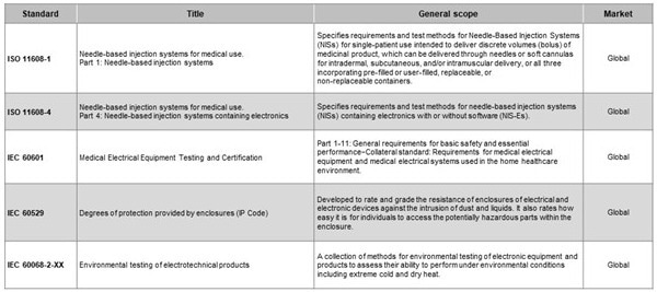 Table 1. Applicable standards for wearable medicine injectors. Source: Littelfuse
