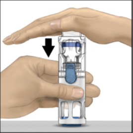 the other hand to press down firmly on the diluent vial until the system is fully