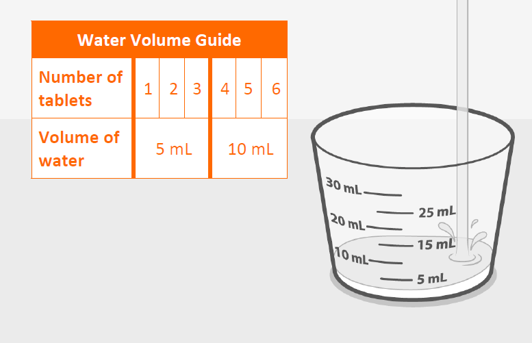 The dispersible tablets can be dispersed in clean drinking water using the supplied