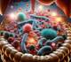 The human gut harbors about 2.2 pounds of microbes, including bacteria, viruses, fungi, and protists.