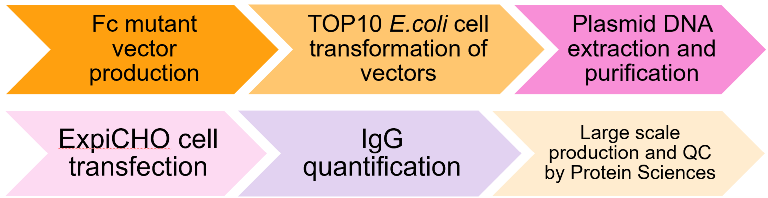 An antibody activates the immune system's cellular and cytoplasmic defence to combat a pathogen. This occurs via interactions of the Fc (CH2-CH3) region to activate three effector function pathways and impacts half-life of antibody (Figure 1). These can be modulated via several Fc mutations to achieve bespoke effects, specific to project needs.