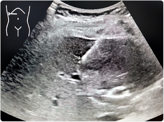 - Ascites or a hyperechoic liver on ultrasound scanning