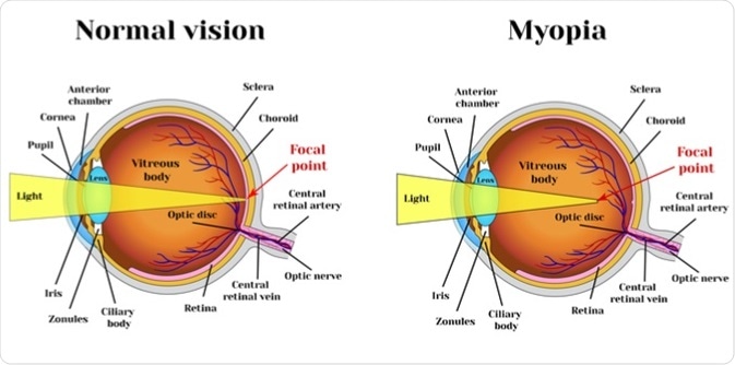 Myopia is a condition where the objects at a distance occur blurry, while closer objects appear clear. This is because the light gets focused in front of the retina and not on the retina. Genome wide association studies (GWAS) and next-generation sequencing (NGS) studies have determined about 24 genes that cause several types of myopia. Among them are the following: