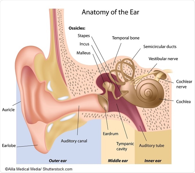 The parts of the ear include the outer ear, the middle ear, and the inner ear.