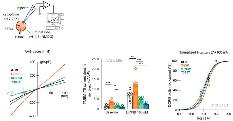 - Building on initial studies at the plasma membrane level, the team extended their investigations to the lysosomal membrane using both manual and automated patch-clamp techniques. These methodologies enabled precise measurement of TMEM175-mediated ionic currents within isolated lysosomes.