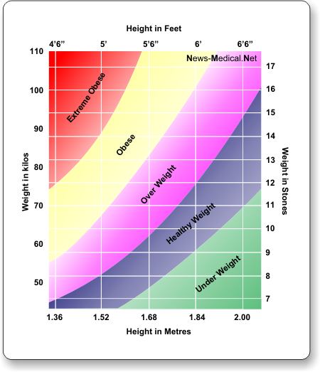 The WHO defines an adult who has a BMI between 25 and 29.9 as overweight - an adult who has a BMI of 30 or higher is considered obese - a BMI below 18.5 is considered underweight, and between 18.5 to 24.9 a healthy weight .