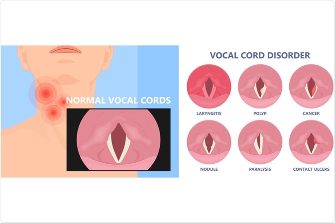 The vocal cords comprise two thin flexible bands of muscle tissue that are stretched across the inside of the voice box. Lesions on these vocal cords are a common cause of voice disorders. Benign lesions of the vocal cords are non-cancerous, whereas abnormal growths fall into three main categories including nodules, polyps, and cysts.