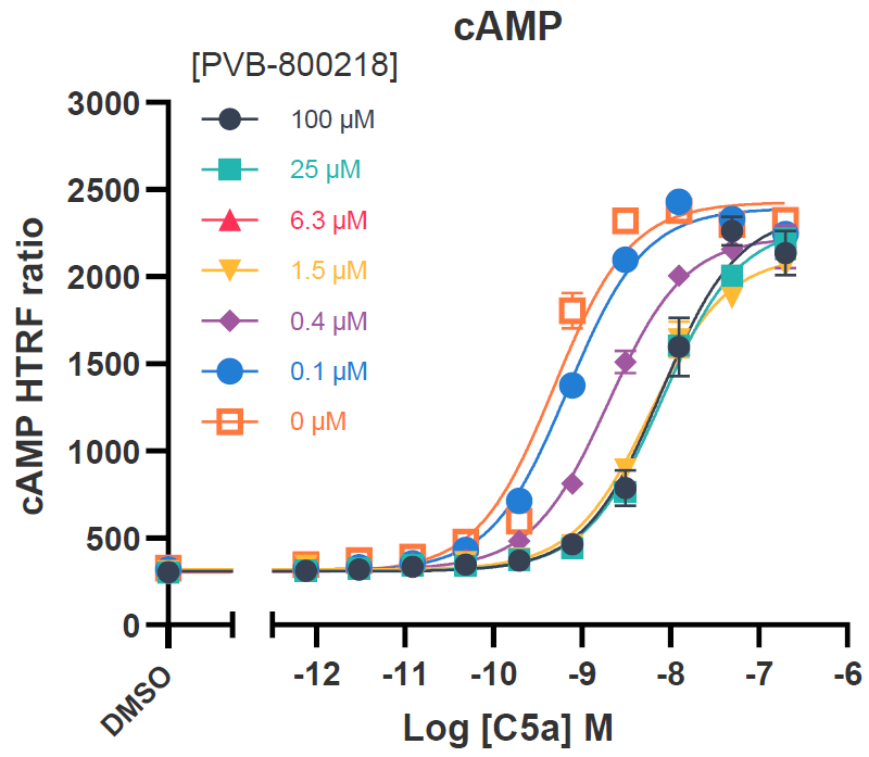 CHO-K1 cells overexpressing hC5aR1 were utilized for cAMP inhibition assays, whilst the DiscoverX PathHunter® assay was employed for investigating β-arrestin recruitment.