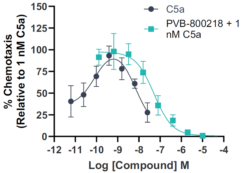 One of the main physiological actions of C5a is as a chemoattractant. The C5aR1 NAMs was tested in a chemotaxis assay using human iPSC microglia, investigating their ability to inhibit C5a-induced chemotaxis.