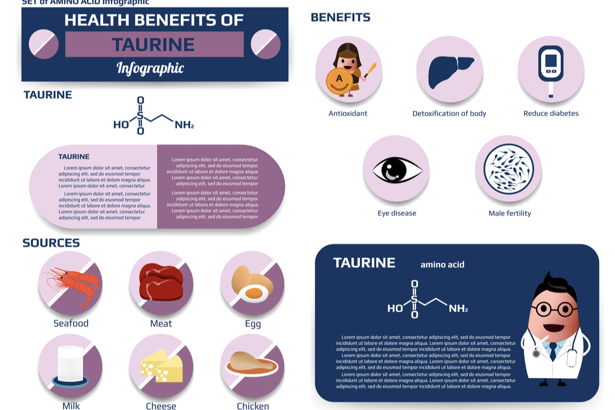 Taurine is an amino acid that is present in many foods. The average daily intake for taurine is approximately 40 milligrams (mg); however, this value can vary depending on the individual diet.  Fish and meat products, for example, have high taurine content; therefore, individuals on a vegetarian or vegan diet tend to have a lower daily intake of taurine.