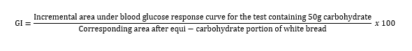 GI provides a standardized comparison of carbohydrate levels two hours postprandial glucose response with that of white bread or glucose.5