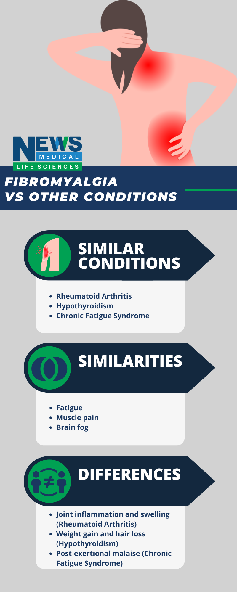 Both conditions share common symptoms, such as chronic pain, fatigue, and non-restorative sleep, making differential diagnosis challenging. Given these overlapped symptoms, it is recommended that patients with hypothyroidism be evaluated for fibromyalgia and vice versa to ensure comprehensive management4.
