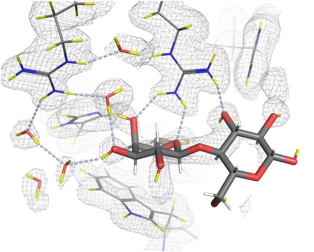 The development of a drug that blocks galectin-3’s role in the progression of cancer could have significant and widespread therapeutic effects. Yet until now, the exact mechanisms of galectin-3 binding have been based upon structures determined with X-rays, which even at high-resolution, do not reveal the positions of all the hydrogen atoms, which are known to play a key role in the binding.