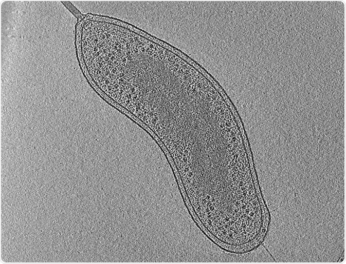 Image: An example of electron cryo-tomography. The image shows a central slice through a tomographic reconstruction of an intact Bdellovibrio bacteriovorus cell. Scale bar 200 nm.©Eikosi/ en.wikipedia.org. Shared under the license.