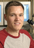 Harden's colleagues in the hydrogel research are Lixin Mi, who earned his doctorate at Johns Hopkins and now is a postdoctoral researcher at the National Institutes of Health; and Stephen Fischer (pictured at right), a current doctoral student in the Department of Chemical and Biomolecular Engineering.