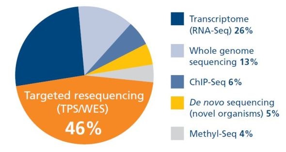 Responses on the most popular research areas for NGS and choice of methods uncovered a trend towards cost-effective, high-resolution targeted resequencing techniques over whole genome sequencing, with the Illumina platform identified as the leading technology. Cancer and rare disease are the most popular research areas for using NGS, supporting the use of targeted approaches which enable more accurate detection of rare variants.