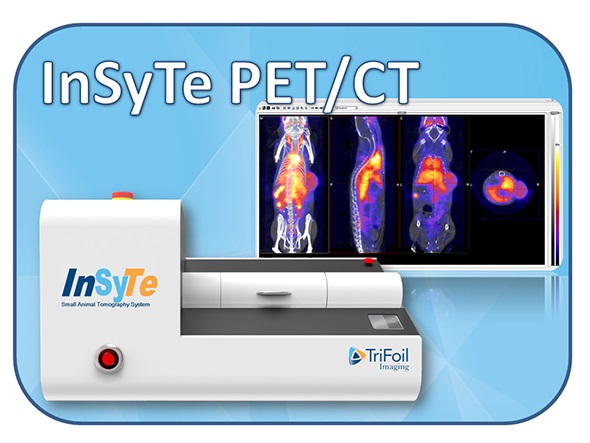 While the Triumph has an established track record, TriFoil’s InSyte is an exciting new product. It is the world’s first multi-modal system that combines CT with either PET, SPECT or FLECT in a compact benchtop unit. The FLECT (Fluorescence Computed Tomography) is particularly exciting as it is the only true 3D optical imaging system. We are fortunate to have a unit here in Australia at the Monash University Parkville campus.