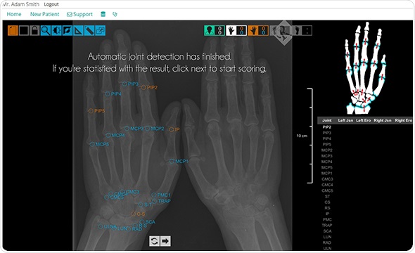 The BGE Bodlnsight product allows the evaluation of X-ray images based on the Sharp/van der Heijde (SvH) scoring system in just a few minutes during the patient diagnosis of rheumatoid arthritis.