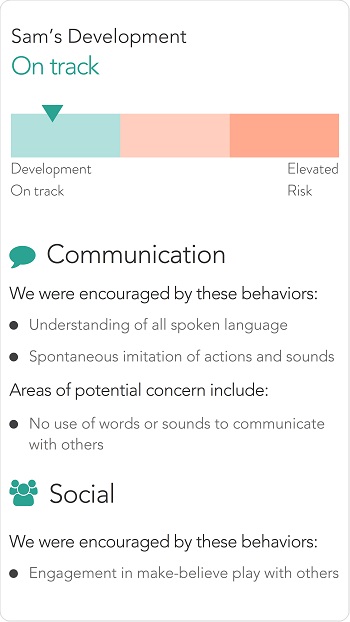 Cognoa provides a personalized report parents can share with their doctor that identifies specific areas where the child is doing well, in addition to areas where the child might need early or rapid intervention.