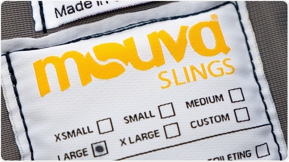 Rather than ink-printed, all specification labels on Mouva® slings are now fully embroidered. Intricate stitching replaces ink to ensure the details on the label will never wash out or fade.