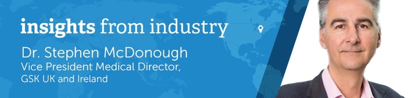 Dr Stephen McDonough is Vice President Medical Director for GSK UK and Ireland. He studied medicine at the University of Nottingham, graduating in 1990 and worked as a physician in hospital and general practice for eight years.