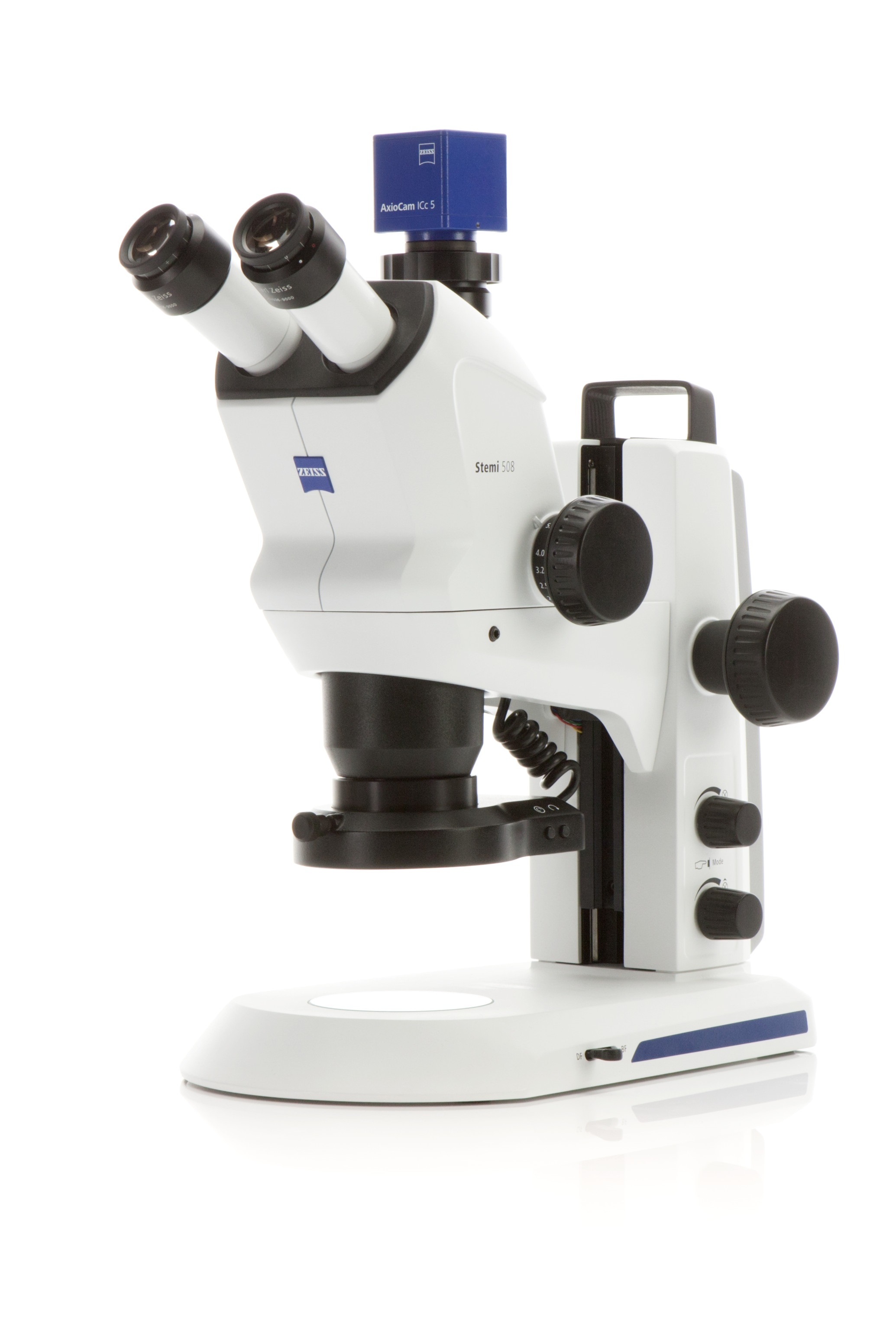 The large 8:1 zoom enables users to get an overview within a 35 mm object field, and then bring the detail up to 50x magnification with impressive stereoscopic image contrast. With its lower viewing angle, Stemi 508 offers better ergonomics than any other Greenough-type stereo microscope.