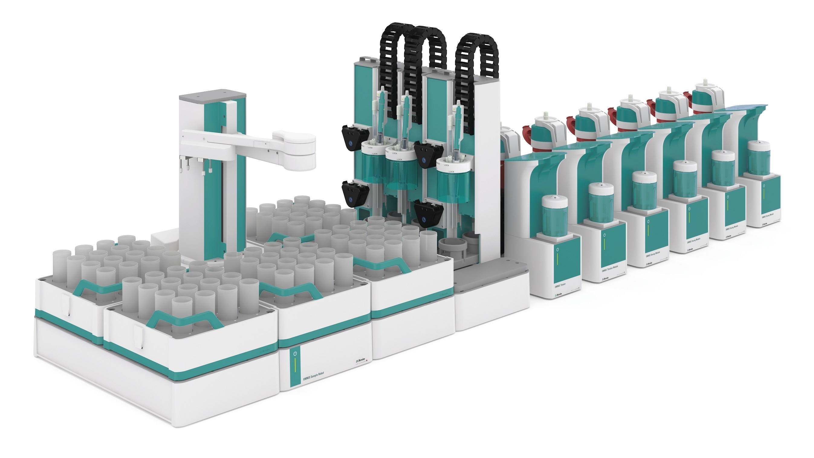 With OMNIS you can just do this: Start out with a simple stand-alone titrator, scale it up step by step, and ultimately benefit from a custom solution performing 4 titrations simultaneously analyzing up to 175 samples for multiple parameters completely unattended!