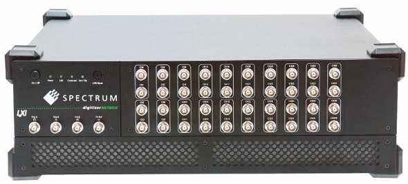 Spectrum Instrumentation has added twelve new products to its family of LXI-based digitizerNETBOX data acquisition instruments. Designed specifically for situations where multiple signals need to be acquired, stored and analyzed, users can select from models that provide 24, 32, 40 or even 48 fully synchronized channels. The new DN6.59x series digitizers are all based on the latest high-resolution 16-bit ADC technology and come with a choice of maximum sampling rates (20, 40 and 125 MS/s) and bandwidths (10, 20 and 60 MHz) to best match applications found in a wide variety of industries. It's a combination that makes these new instruments ideal for use in multi-channel applications where signals, in the DC to 60 MHz frequency range, need to be acquired and analyzed with the highest precision and accuracy.