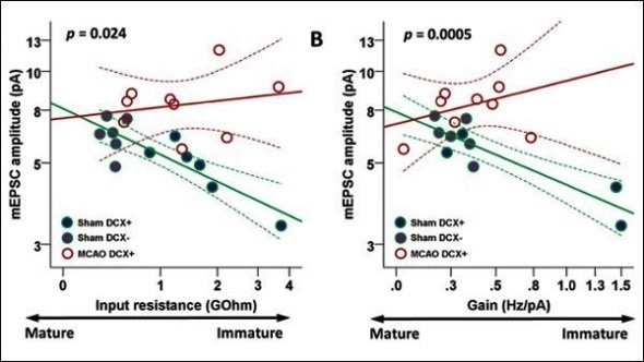 By temporarily cutting off blood supply to the brains of male and female mice, the researchers demonstrate the neurons generated as a result of this stroke model develop into hyperexcitable cells that may contribute to hippocampal dysfunction. This finding begins to uncover the cellular mechanisms underlying post-stroke neuropsychiatric disorders.