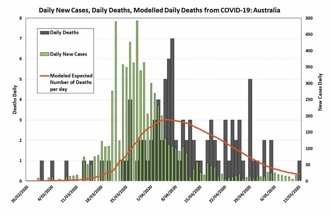 The study was based on the daily confirmed case and death count from the Australian Government Department of Health website and the Johns Hopkins Coronavirus Resource Center. The study period covered the duration between January 22 to May 12, 2020.