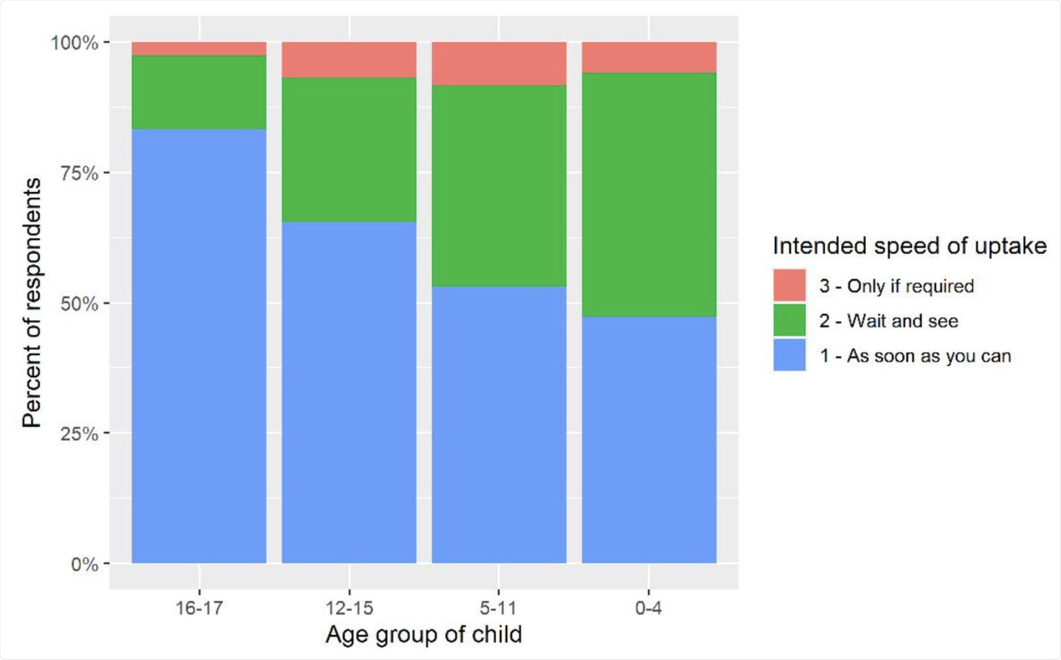 Intended speed of vaccine uptake for children among vaccine motivated parents.