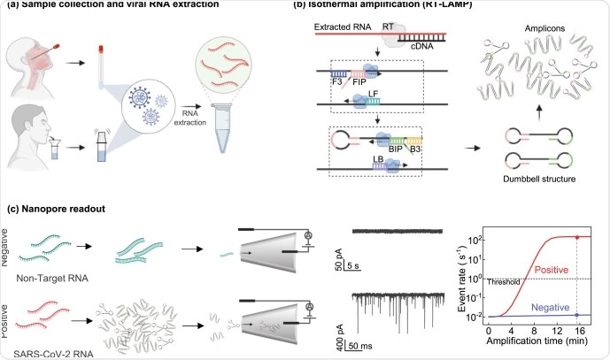 In a previous study, a LAMP-coupled nanopore sensor for malaria nucleic acid test was demonstrated. Based on label-free electronics-based nanopore sensors, this method is a new avenue for making accessible molecular testing at the point of care. In the present study, the researchers report using the RT-LAMP coupled nanopore platform for rapid detection of the SARS-CoV-2.
